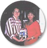 Madame Didia Gallordo, animatrice de la radio de Panama, tient une brochure de Maître et pose pour une photo avec des pratiquants.