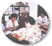 Les amis pratiquants de Panama préparent les livrets-échantillon pour le séminaire.