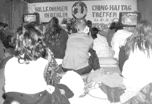 L'atmosphère de la retraite était détendue et joyeuse, et nous étions joyeux d'être ensemble, en plus grand nombre comparativement à notre méditation de groupe habituelle. Pour notre bien-être physique, le groupe de cuisine a pris soin de nous en préparant une délicieuse nourriture végétarienne. Des amis qui étaient intéressés par la Méthode Guan Yin ont aussi été invités. C'était intéressant parce que les disciples locaux avaient l'opportunité de rencontrer des frères et soeurs venant d'autres parties de l'Allemagne. Certains nous ont dit qu'ils devaient conduire chaque semaine environ deux heures et demie pour arriver au centre le plus près de chez eux pour assister à la méditation de groupe. C'était aussi beau de voir que de nombreux jeunes frères et soeurs étaient parmi nous. Nous espérons que cette retraite sera le début de nombreuses retraites à Berlin durant le prochain millénaire, et nous remercions tous les frères et soeurs qui ont fait en sorte que cette réunion puisse avoir lieu ! Merci, Maître, parce que à travers Vous nous pouvons nous rencontrer les uns les autres !