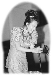 Quand Maître est arrivée dans le hall, une petite africaine s'est précipitée pour Lui donner un baiser en signe d'accueil. Quand Maître a ouvert aussitôt les bras et l'a embrassée avec beaucoup d'amour, le visage de l'enfant rayonnait d'amour et d'émerveillement. Dans une longue robe orangée brillante, rehaussée de broderies vertes faisant penser à une princesse charmante, Maître est entrée royalement dans le hall. Un membre du Centre Bouddhiste Tibétain de la ville lui a offert un "hada" blanc, vêtement symbolisant un "nuage blanc", ce qui est la forme d'accueil la plus chaleureuse chez les Tibétains, pendant que d'autres dans la salle offraient des fleurs de bienvenue.