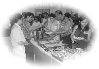 ![]() | Les visiteurs regardant attentivement la vidéo-cassette de Maître. |