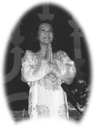 La salle de conférence, remplie de gens debout afin de pouvoir entrevoir Maître, a tremblé sous les applaudissements dès Son arrivée. Les gens des deux côtés de l'allée menant à la scène tentaient de La toucher, de Lui serrer la main ou de L'embrasser lors de son passage.