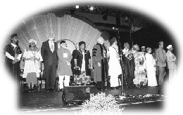 Dans la ville, on ne pouvait pas faire deux pâtés de maison sans voir les posters de Maître qui donnaient à l'environnement une sensation chaleureuse provenant de Son amour et de Sa bénédiction. L'ouverture du Parlement, le 1er Décembre, coïncidait avec la journée Mondiale du Sida. Á ce titre, les leaders religieux ont fait pendant une heure un discours adressant des doléances aux gouvernements du monde entier d'oeuvrer étroitement à la cause des victimes du Sida, et aux populations mondiales d'aider ceux-ci dans la prière. Cette cérémonie s'est terminée par une prière silencieuse.