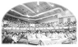 Dans un autre stade situé près du hall de méditation, il y avait une salle d'exposition, des bureaux d'information sur la pratique spirituelle, une zone destinée aux livres, aux expositions des Vêtements et des Bijoux Célestes, ainsi que d'autres stands. Puisqu'il y avait beaucoup de place et qu'une grande énergie circulait à travers les lieux, une estrade avait été aussi prévue dans ce stade de sorte que Maître durant la retraite puisse y rencontrer par petits groupes des initiés du monde entier.