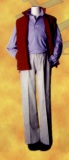 un ensemble haut. Ces ensembles sont fabriqués en deux pièces, ils sont légers et chauds, faciles à laver et ne peluchent absolument pas. Ils sont disponibles en huit couleurs : violet clair, blanc, rouge, jaune, vert, bleu roi, bleu marine, et beige. Ces couleurs vives séduisent le regard. Un modèle a des manches longues, deux poches et une capuche, un autre est une veste à deux poches et le troisième a de longues manches et un col haut. Cette série unisexe est créée pour la détente et l'insouciance et conçue pour homme et femme.