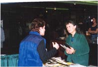 | Captivés par la mélodieuse voix de Maître, les gens se sont arrêtés au stand du centre de Vancouver pour regarder Ses cassettes vidéo et poser des questions. |