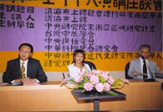Président (M. Chu Hong-yuan du département d'histoire moderne, de l'Académie Sinica) : Bien le bonjour à vous tous, Maître Suprême Ching Hai, Professeur Ruaan Jy-sheng de l'Université nationale de Taiwan et amis des secteurs académiques et publics. L'Académie Sinica n'a pas souvent la chance, comme c'est le cas aujourd'hui, de s'étendre sur un sujet pour y explorer aussi bien l'aspect religieux qu'académique.