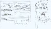 L'autoportrait et un paysage qu'un artiste a dessinés pour Maître dans le livre des visiteurs. |