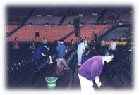 Du 2 au 5 mai, de nombreux groupes de pratiquants arrivèrent au Centre de Taoyuan, apportant les matériaux et, évidemment, leur amour et leur zèle. Ils se jetèrent alors passionnément dans les préparatifs. Certains d'entre eux entreprirent la tâche de fixer les décorations à travers le stade : depuis l'entrée principale jusqu'à l'exposition d'art, puis jusqu'au stand des livres, ensuite jusqu'à l'exposition des Vêtements et des Bijoux Célestes. D'autres travaillaient derrière la scène afin de balayer et de nettoyer le stade, d'augmenter les rangs de chaises supplémentaires au rez-de-chaussée, de mettre en place des téléviseurs sur les balcons, d'installer des câbles, de garnir la scène avec des tapis, de transporter et de disposer des plantes et des arbres sur et autour de la scène, de définir un cadre de travail pour les activités se déroulant derrière la scène, et d'installer un immense écran de projection pour la télévision de chaque côté de la scène.