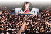 Au milieu de la salle, en hauteur sur un grand écran, une courte vidéo a été projetée présentant Maître : "Suivez le chemin de l'amour". Ensuite, un initié de Hong Kong a partagé avec l'auditoire ce qu'il avait expérimenté sur son chemin spirituel. A ce moment là, Maître est entrée dans la salle d'une manière gracieuse et élégante. Immédiatement, la salle a été inondée d'un tonnerre d'applaudissements. L'auditoire impatient s'est levé pour saluer Maître.