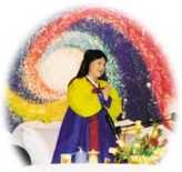 Dans la soirée de la conférence, Maître est arrivée portant une belle 'hando' bleue, jaune et rouge, robe traditionnelle coréenne. Avant que Maître ne parle, un groupe de jolies danseuses a effectué une danse traditionnelle coréenne. Après une offrande de fruits et de fleurs, Maître a amené l'auditoire à prier en silence et avec sincérité pour la Corée (du Nord et du Sud) et pour la paix dans le monde.