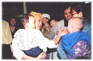 De nombreux initiés et enfants ont reçu l'attention et le contact plein d'amour de Maître.
