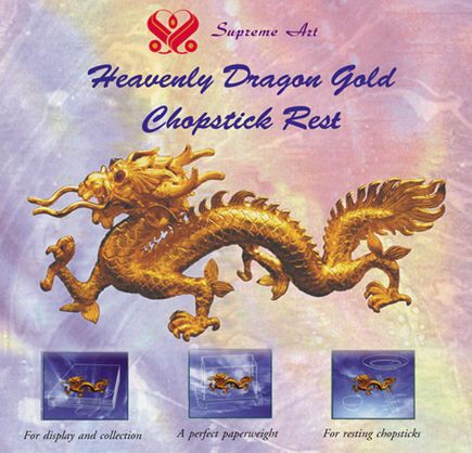 Une nouvelle pièce s'ajoute à la magnifique et splendide vaisselle en or de la série de Dragon Céleste créée par Maître Suprême Ching Hai : le porte-baguette Sen or de la série du Dragon Céleste.