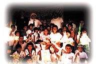 Nous nous sommes d'abord arrêté à San Juan del Gozo dans la province de Usulutan où nous avons visité le premier village éloigné au bord de la mer. Il y a deux ans, ce village a été complètement dévasté par le typhon Mitch, laissant les routes dans un piètre état (boueuses), et les villageois dans la pauvreté et la misère. Lorsque nous nous sommes rendus là-bas le 17 novembre pour sonder le terrain, nous leur avons apporté l'amour de Maître pour leurs enfants. Ils nous ont dit que la pauvreté les empêchait de bien s'occuper de leurs enfants et qu'ils n'avaient jamais fêté l'anniversaire des enfants ni Noël avec eux. En sachant qu'ils avaient besoin d'une pompe à eau, nous leur en avons acheté une en plus des biens de consommation nécessaires, tels que des vêtements, du lait en poudre, du riz, des fèves rouges, de l'huile, du sucre, de l'avoine, ainsi que plein de jouets, biscuits et bonbons. Nous avons livré la marchandise aux résidents le 14 novembre lorsque nous avons visité à nouveau leur village. Nous avons aussi organisé, avant le temps, une fête de Noël pour tous les enfants du village à laquelle plusieurs centaines d'enfants ont participé avec joie. Selon le conseil de village, certaines personnes les ont aussi aidés auparavant. Mais ils ne sont venus que pour jeter un coup d'œil et ont ensuite envoyé quelqu'un d'autre pour acheter les affaires. Ils ont été très émus parce que nous avons vraiment trouvé ce dont ils avaient besoin et nous leur avons livré personnellement notre amour dans leurs mains.