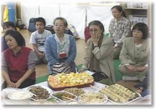 L'arrivée des invités a signalé le début de la dégustation. Les pratiquants ont offert des mets végétariens délicats et des fruits préparés avec amour et présentés avec un goût exquis. Des pratiquants de Gunma qui ne pouvaient être présents à cet évènement avaient néanmoins envoyé un lot de "gâteaux d'anges", une pâtisserie renommée. Les invités et les initiés ont dégusté ces gâteries, le cœur rempli d'une affection incommensurable pour la famille Guan Yin, immergés dans l'extase des bénédictions infinies de Maître en cette commémoration du Jour Ching Hai.