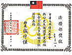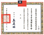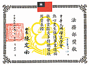 Mention d'éloge présenté par le Ministre de la justice de Formose pour notre rôle dynamique dans l'instruction des détenus. (A)