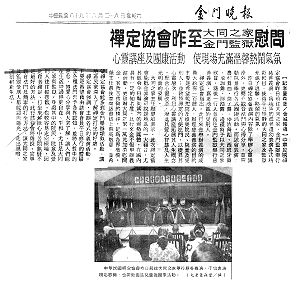 Selon M. Yen En-wei, directeur de la Maison de la Fraternité Universelle, cette visite bénit tout particulièrement Kinmen car l'Association internationale de Méditation de Maître Suprême Ching Hai est renommée pour sa promptitude à venir en assistance aux groupes socialement défavorisés de Formose. À leur dernière visite à Kinmen, les initiés ont offert un spectacle extraordinaire préparé par des bénévoles. Ils ont également fait un don de 10 000$ NT (près de $300 US) à la Maison de la Fraternité Universelle pour l'achat de nourriture. Leur esprit d'entraide et leur assistance aux nécessiteux sont un exemple modèle pour la société.
