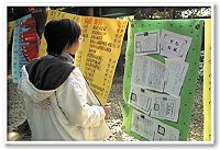 Des affiches accrochées aux arbres banians guidaient le chemin de la grille principale au Pont Zigzag. Ces affiches racontaient les actions caritatives de maître à travers le monde depuis 1990. En bas de page était disposé des lettres d'appréciations des gouvernements et des organisations. Ces rapports racontaient beaucoup d'histoires sur l'infinie compassion et affection de Maître, encourageant et rappelant aux lecteurs de suivre Ses pas, puisque la pratique spirituelle ne doit pas se limiter à s'asseoir les jambes croisées et à profiter du Nirvana ; elle doit aussi inclure la transformation de notre amour en action pour aider nos frères et sœurs à travers le monde.