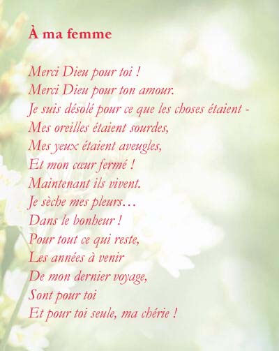 1998, j'ai écrit à ma femme, le poème suivant comme