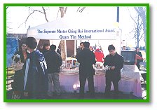 Pour propager les enseignements de Maître, les disciples de Sacramento et de San Francisco ont saisi cette opportunité pour installer un stand qui n'a pas manqué d'attirer de nombreux visiteurs sincères. Par exemple, un monsieur d'origine allemande s'est avancé d'un air curieux vers notre stand. Une soeur a engagé avec lui une conversation. Cet allemand dont l'intérêt pour les enseignements de Maître croissait, a dit qu'il contactera dès son retour Le Centre de sa région. Il y a eu aussi ce vieil homme aulacien qui a essayé à plusieurs reprises de contacter notre groupe sans succès. Très heureux de voir le stand de Maître, il a parlé avec le correspondant de Sacramento et s'est inscrit sur-le-champ pour apprendre la Méthode Pratique. Il a emporté tout heureux un livret-échantillon de Maître et plusieurs magazines.