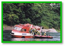 par des véhicules amphibies, le sauvetage de personnes dans des rapides