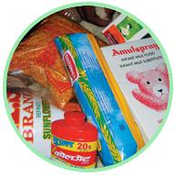 riz, 5 kg de dal (haricots) et 1 kg de tomates et d'aubergine.