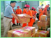 de riz, friandises, chocolats, eau potable et autres denrées.