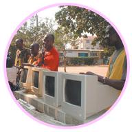 donné au Village quatre ordinateurs, un bidon d'huile de
