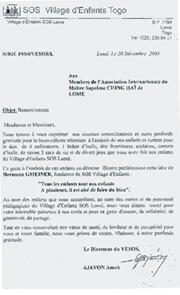 Directeur du Village SOS pour enfants et adressée aux membres de
