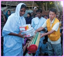 habitants locaux. En achetant et en emballant des articles de secours,