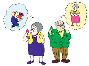 (à l'origine en anglais) DVD n° 755 Un homme âgé et une femme âgée se fréquentaient depuis environ cinq ans. L'homme a finalement décidé de lui demander de l'épouser et elle a immédiatement dit : « Oui ! » Mais le lendemain matin, lorsqu'il s'est réveillé, le vieil homme ne pouvait plus se rappeler sa réponse. « Etait-elle heureuse ? Je pense que oui ! Non, elle m'a regardé d'un air bizarre ! » Ainsi après une heure