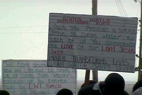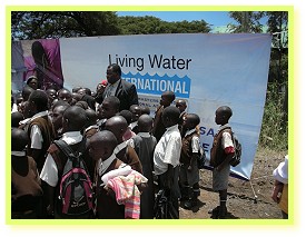 Le responsable des opérations de Living Water International prononce un discours de remerciement à Maître Suprême Ching Hai pour Son amour et Ses dons qui ont permis la construction de ce puits. |