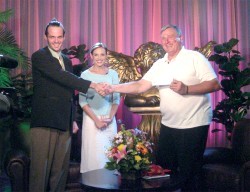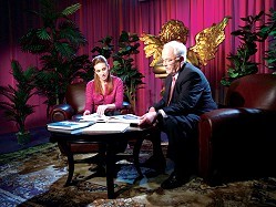 L'animatrice de "Un voyage à travers les royaumes esthétiques" interviewe M. Chuck De Vet, le Président et fondateur de Services Humanitaires pour les enfants vietnamiens. |