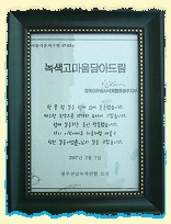 [Gwangju] Green Korea United est une organisation civique travaillant pour protéger les écosystèmes et promouvoir un mode de vie qui harmonise humains et nature. Les initiés de Gwangju ont travaillé avec Green Korea United dans le cadre de plusieurs activités. Comme nous avons fourni de délicieux plats végétariens à chaque événement, notre groupe est devenu un représentant du végétarisme et de la compassion du Mode de vie alternatif. Pour nos efforts, Green Korea United nous a remis, le 1er février de l'année d'Or 4 (2007), une plaque de remerciements lors de son assemblée annuelle, disant qu'ils étaient reconnaissants pour notre aide « verte » et nous appelant de « beaux Terriens ». Lors de la cérémonie, ils ont ainsi présenté notre Association : « Ce groupe de gens a mis en pratique le végétarisme, que nous ne connaissions que de façon théorique auparavant. Au-delà de leurs efforts verts, ils se développent aussi spirituellement afin de distribuer leur amour à chaque coin de notre société. » Après la cérémonie, ils nous ont dit qu'ils envisageaient de constituer un groupe végétarien et qu'ils avaient besoin de notre aide pour des activités futures. Nous sommes heureux de pouvoir travailler avec ce noble groupe en ayant pour but de vivre dans la paix et l'harmonie avec tous les êtres sensibles.