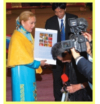 Following that, Master presented the Shining World Leadership Award to Mr. Morato ♥♥♥♥♥♥ and to Senator Alvarez ♥♥♥♥♥♥. Mr. Alvarez recalled how they had helped the Aulacese refugees to settle. He also praised Master for Her help and for having so much love for the refugees. Mr. Morato, during the ceremony and in a correspondence sent after he had returned to his country, expressed his gratitude to Master and Her Association. He also praised Her as a very loving person and said that when She came to him for help, he felt it was his pleasure to do so. He also said the he felt electrified, very refreshed and enlightened in his time with our group, and added: "How I wish all the people of the world would behave the way Your fellow members do. Then the world would truly be a peaceful place to live in."