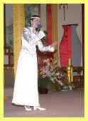 Later, Master went to the Hall of Sacred Love - the big meditation tent area - to celebrate with the fellow initiates and watch their exuberant performances. She sang a cheerful Happy New Year song with us from lyrics that She had created Herself as follows, sung to the tune of the Happy Birthday song: "Happy New Year Heaven, Happy New Year On Earth, Happy New Year All Beings, Happy Peaceful New Year."