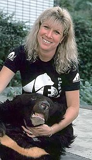 Née en Angleterre, Jill Robinson est la fondatrice et la directrice de l'Animals Asia Foundation (AAF). En 1995, elle a reçu de la part du Reader's Digest le « Prix du Héros d'aujourd'hui » et a été désignée Membre de l'Ordre de l'Empire britannique par la Reine Elisabeth en 1998 pour honorer ses services en faveur du bien-être animal en Asie. Jill Robinson a travaillé pour IFAW (International Fund for Animal Welfare, le Fonds International pour le Bien-être Animal) pendant 11 ans avant de fonder l'association Animals Asia à Hong-Kong en 1998, qui est enregistrée à Hong-Kong, au Royaume-Uni, aux Etats-Unis, en Allemagne et en Australie comme une organisation de charité pour le bien-être animal. En 1991, elle a fondé « Docteur Dog » (Docteur Chien), le premier programme de thérapie animale à Hong-Kong, qui s'est ensuite étendu à la Chine et d'autres parties d'Asie. Plus de 300 « consultants canins » sont officiellement enregistrés comme animaux de thérapie animale d'AAF, et les équipes de volontaires enthousiastes effectuent des visites régulières dans les hôpitaux, centres pour jeunes et seniors, orphelinats et écoles pour partager la chaleur et l'amour inconditionnel des animaux avec les gens dans le besoin. Ces activités encouragent les gens à respecter toute la vie. La campagne de « Sauvetage des Ours de Chine » a permis de toucher les cœurs à une échelle internationale, et ainsi de provoquer un changement d'attitudes considérable en faveur du bien-être des animaux à travers la Chine. Les ours noirs d'Asie étaient également appelés Moon Bears, du fait de la belle forme de croissant de lune jaune sur leur poitrine. Ils sont l'une des huit espèces d'ours dans le monde et sont inscrits sous la Convention sur le commerce international des espèces de faune et de flore sauvages menacées d'extinction (CITES). Cela signifie qu'aucun commerce international d'ours noirs vivants ou d'une de ses parties n'est possible. Malheureusement, durant des milliers d'années, les ours noirs ont été chassés et tués pour leur bile utilisée comme médicament. En fait, il a été prouvé dans le domaine médical que la bile peut être aisément remplacée par des plantes ou des alternatives synthétiques qui sont meilleur marché, plus efficaces et plus facilement disponibles. Cependant, des milliers d'ours supportent encore la torture dans des fermes d'ours de nombreux pays asiatiques. En 1993, quand Jill a été témoin du traitement inhumain de ces beaux ours noirs dans une ferme d'ours chinoise, elle s'est juré de revenir un jour pour les sauver. Elle a alors débuté un travail inlassable pour sauver des ours en Chine. Bien que cette action provoque procès, tourments et immenses chagrins, l'AAF, par ses efforts permanents, a finalement signé un accord sans précédent avec l'autorité chinoise pour tout d'abord organiser le sauvetage d'environ 500 ours vivant dans les conditions les plus horribles dans la province du Sichuan, et ensuite travailler ensemble sur le long terme pour complètement éliminer l'utilisation de bile d'ours en Chine. Cet accord historique était la première entente entre le gouvernement chinois et une organisation extérieure de protection des droits animaux. La coopération active entre les deux parties a permis de fermer plus de 40 fermes. Dans cette démarche, la sincérité, le dévouement et l'esprit travailleur de Jill ont profondément impressionné les fonctionnaires chinois. De plus, elle a obtenu la permission du gouvernement chinois d'installer un centre de sauvetage des ours à Chengdu (Sichuan). Jusqu'à présent, 219 ours noirs ont été sauvés par l'AAF. Ce sanctuaire est devenu un village éducatif, qui permet aux visiteurs d'être témoins de la transformation incroyable des ours sauvés de l'enfer et vivant désormais de façon libre et heureuse, et de prendre conscience de la nécessaire harmonie entre l'homme, les animaux et la nature, et du devoir de protection de l'environnement. Actuellement, Jill Robinson, son équipe de l'AAF et leurs membres internationaux luttent toujours pour que plus de 7 000 ours noirs ne soient plus torturés dans les fermes d'ours. Son exemple brillant, l'histoire entre elle et les ours noirs et le message qu'elle fait passer – dont celui relatif à son style de vie végétarien – ont suscité l'enthousiasme de la jeunesse chinoise à propos de la protection animale, et ont aussi incité le grand public à mieux respecter nos amis animaux. Merci, Jill Robinson, l'héroïne des ours noirs. Que Dieu bénisse votre noble travail. Références :