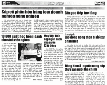 Le journal hebdomadaire « Rural Economy », imprimé nationalement à plus de 100 000 exemplaires, a récemment publié un reportage sur le don de 30 000 $US fait part Maître Suprême Ching Hai au fonds d'aide à l'éducation et d'action humanitaire de l'Association centrale du Vietnam pour la promotion du développement éducatif. Cette organisation non gouvernementale, à but non lucratif, promeut le développement d'éducation et les travaux d'intérêt général auprès de 54 groupes ethniques dans le besoin en Au Lac. Le journaliste Tan Phong de « Rural Economy » explique : « Récemment, cette organisation a reçu 30 000 $US de la part de l'Association Internationale de Maître Suprême Ching Hai aux Etats-Unis. M. Tran Minh Tam, le directeur de l'agence, a déclaré : ‘l'argent que nous recevons des gens de cœur dans notre pays et de l'étranger est utilisé pour des buts humanitaires et éducatifs, afin d'aider les pauvres étudiants, les enfants sans foyer et déshérités, et ceux qui vivent dans des secteurs éloignés et n'ont pas les moyens d'aller à l'école dans les provinces et les villes au sud. Selon notre plan, en 2007, nos fonds seront utilisés pour financer 10 000 bourses pour soutenir les étudiants universitaires pauvres qui sont motivés pour étudier, pour construire 100 maisons destinées aux enseignants démunis qui enseignent dans des écoles reculées et pour construire plus d'écoles.' » Le Directeur Tran Minh Tam a exprimé sa gratitude pour l'amour de Maître Suprême Ching Hai et Son attention à l'égard des étudiants et des moins chanceux.