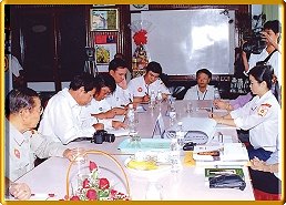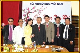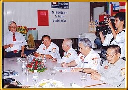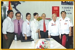 | (De la gauche) Trois amis initiés, M. Nguyen Manh Came (Président de l'Association centrale du Vietnam pour la promotion du développement éducatif) et trois membres du bureau du fonds d'aide à l'éducation et d'action humanitaire (photo prise à Hanoï) |