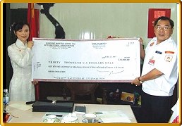 Un chèque de 30 000 $US est remis au Directeur Tam du fonds d'aide à l'éducation et d'action humanitaire |