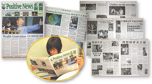 Positive News, un journal international trimestriel imprimé en anglais et chinois, est désormais disponible à Hong-Kong. Son rédacteur en chef, Peter Lloyd, a expliqué : « Positive News est une idée de notre époque. Il est joyeux d'entendre toute la satisfaction que procure un journal qui se concentre sur le positif. J'espère que le journal répondra aux besoins de durabilité écologique et de vie légère à Hong-Kong et en Chine. » La multiplication de journaux à contenu positif est elle-même une bonne nouvelle !!
