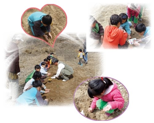 Les enfants découvrent Par le groupe d'informations de Corée [Youngdong]Le 18 mars de l'année d'Or 4 (2007), tandis que les initiés participaient à une retraite d'un jour, quelques enfants des familles Quan Yin ont découvert l'agriculture biologique dans le jardin du Centre de Youngdong. Après avoir aplani le sol et choisi leurs graines préférées, les enfants les ont plantées avec un peu d'engrais biologique. Des graines de sarrasin ont également été semées dans le champ voisin. On s'attend à ce que d'ici un mois certains légumes soient prêts à être mangés. Un frère, qui est un fermier biologique certifié par le gouvernement, a expliqué pourquoi il était important de manger biologique : la terre contient de nombreux microbes ; si nous les protégeons et les aidons, ils seront reconnaissants et nous donneront des légumes nutritifs. Ainsi les légumes deviennent plus sains et sont dépourvus de produits chimiques qui peuvent être nuisibles à notre corps. Les consommateurs de végétaux seront alors en pleine forme. L'agriculture biologique respecte les microbes qui sont invisibles, mais très précieux. Les enfants ont aussi appris qu'une graine plantée avec amour donne plus de légumes.