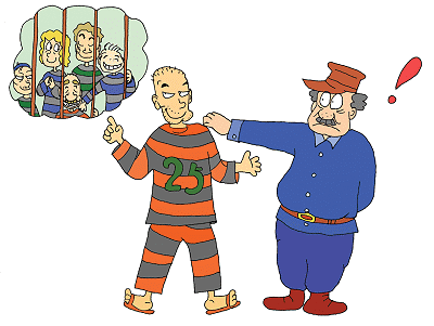 Le surveillant d'une prison se sentait désolé pour un des détenus car chaque week-end pour la journée des visites, la plupart des prisonniers rencontraient des membres de leur famille et des amis, mais le pauvre Georges était toujours assis seul dans sa cellule. Ainsi lors d'une journée des visites, le surveillant a appelé Georges à son bureau et a dit : « Je remarque que vous n'avez jamais eu de visiteurs, Georges. » Compatissant, il mit sa main sur l'épaule de Georges. « Dites-moi, vous n'avez pas d'amis ou de famille ? » Georges répondit : « Oh, si bien sûr, mais ils sont tous ici ! »