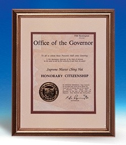 | En 1993, le Gouverneur Fife Symington de l'Arizona, Etats-Unis, a attribué à Maître Suprême Ching Hai le titre de citoyenne honorable. |