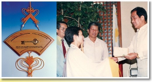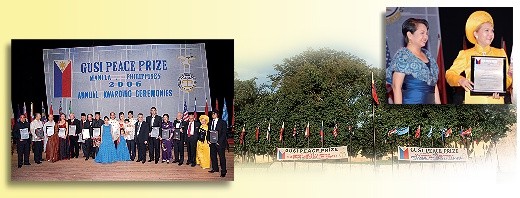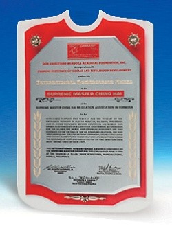 | In 1994, the GMMSF (Guillermo Mendoza Memorial Scholarship Foundation) and the Filipino Institute of Social and Livelihood Development honored Supreme Master Ching Hai the International Humanitarian Award. |