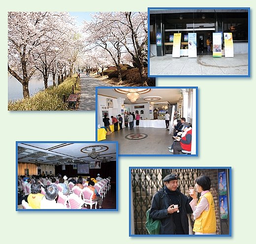 [Kyungjoo] Le 8 avril de l'année d'Or 4 (2007), des amis initiés ont tenu un séminaire vidéo au Hall des Noces de Kyungjoo pour présenter les enseignements du Maître. Ils ont aussi offert un repas végétarien aux participants.