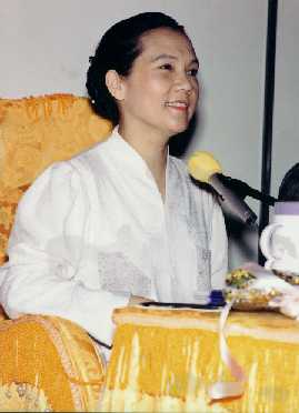 Je suis si comblée par votre amour et par votre accueil. J'étais très fatiguée après mon voyage et aussi plusieurs jours sans sommeil. Mais je me sens très bénie et heureuse de me retrouver avec vous ce soir. Je suis certaine que nous nous connaîtrons comme nous nous étions connus. Et il n'y a rien de nouveau pour nous ce soir, rappelons-nous simplement ce que nous aurions pu oublier ou ce que nous avons placé dans un coin reculé de notre âme sans avoir l'occasion de le redécouvrir. C'est l'illumination, la nature illuminée de notre grand être. Je suis comblée non seulement à cause de votre amour, mais aussi parce que je réalise que je suis assise devant la manifestation des Bouddhas et de Dieu et cela me fait verser des larmes de joie.